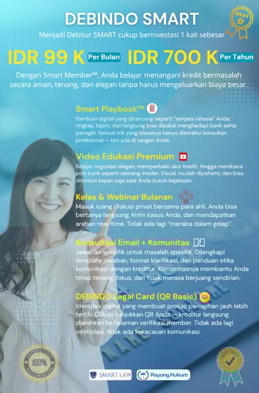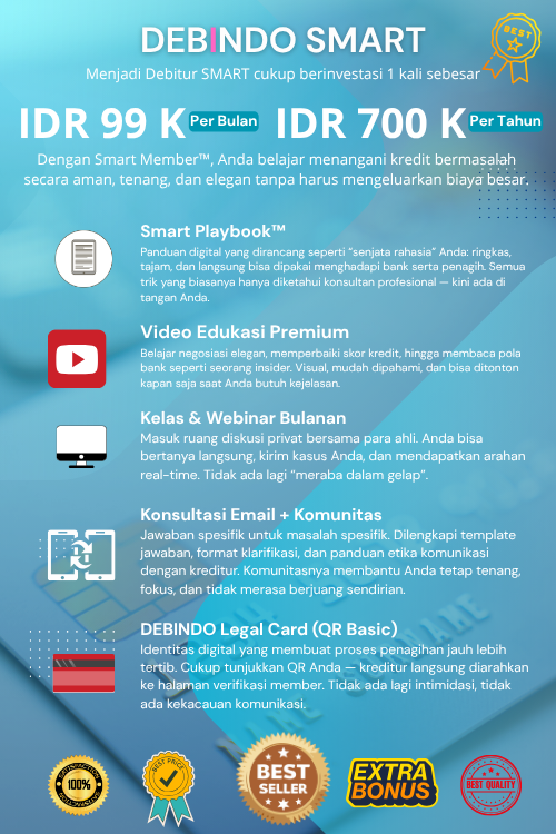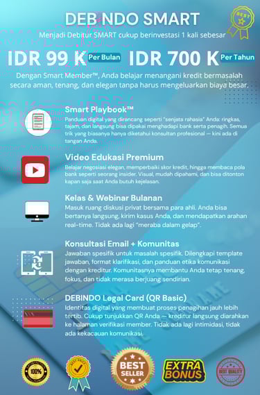 Melalui format ebook digital, modul ringkas, template dokumen, SOP komunikasi, dan panduan langkah demi langkah, DEBINDO Smart™ memberikan pemahaman yang mudah, sistematis, dan aplikatif—tanpa istilah hukum yang rumit.